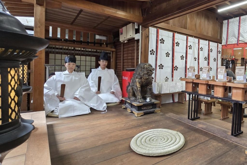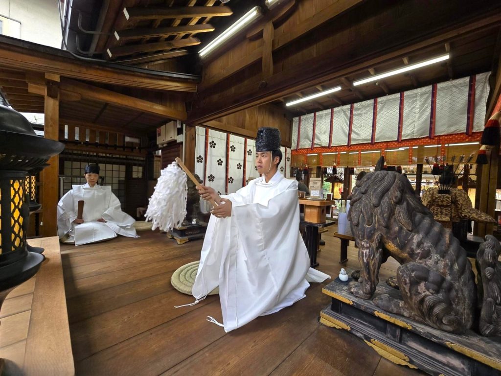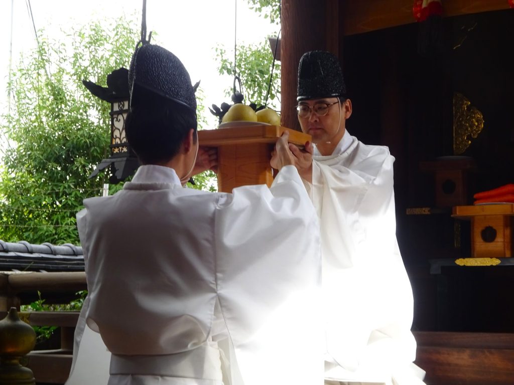お知らせ2025年 10月25日月次祭(十月の天神さん)ゆっくりと秋がやって来ました。本日の天神さんの日は滞りなく斎行され、お供えに実りの季節が感じられました。作物の豊穣を願い皆様のご健康とご多幸をお祈り申し上げました。秋の実りのお供え遠州正風宗家 芦田一馬宗匠による献花