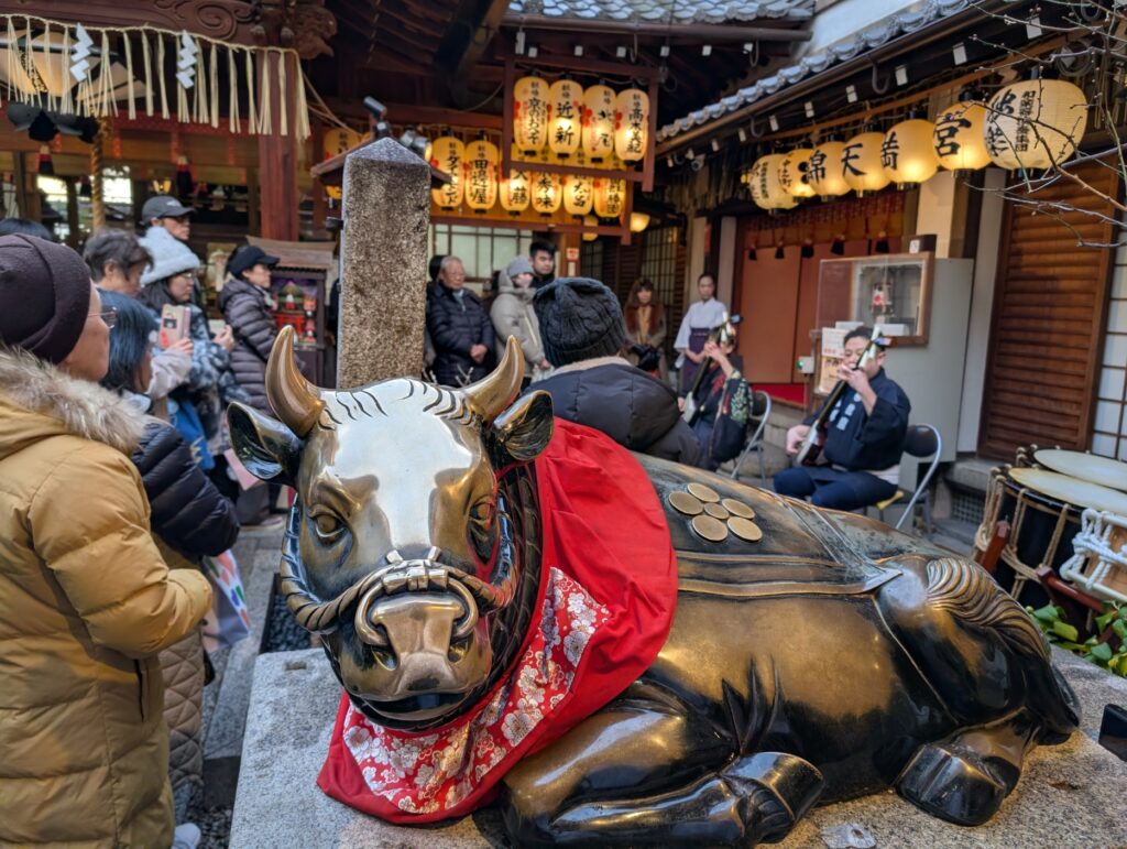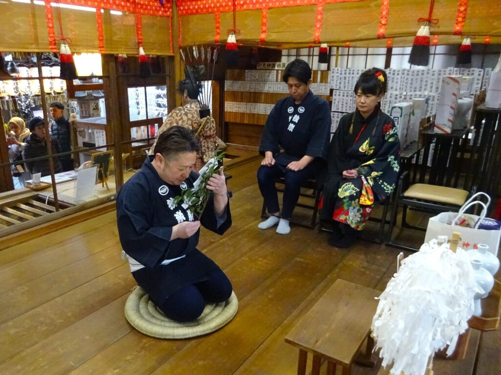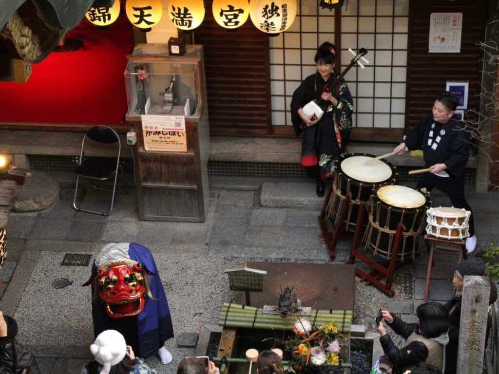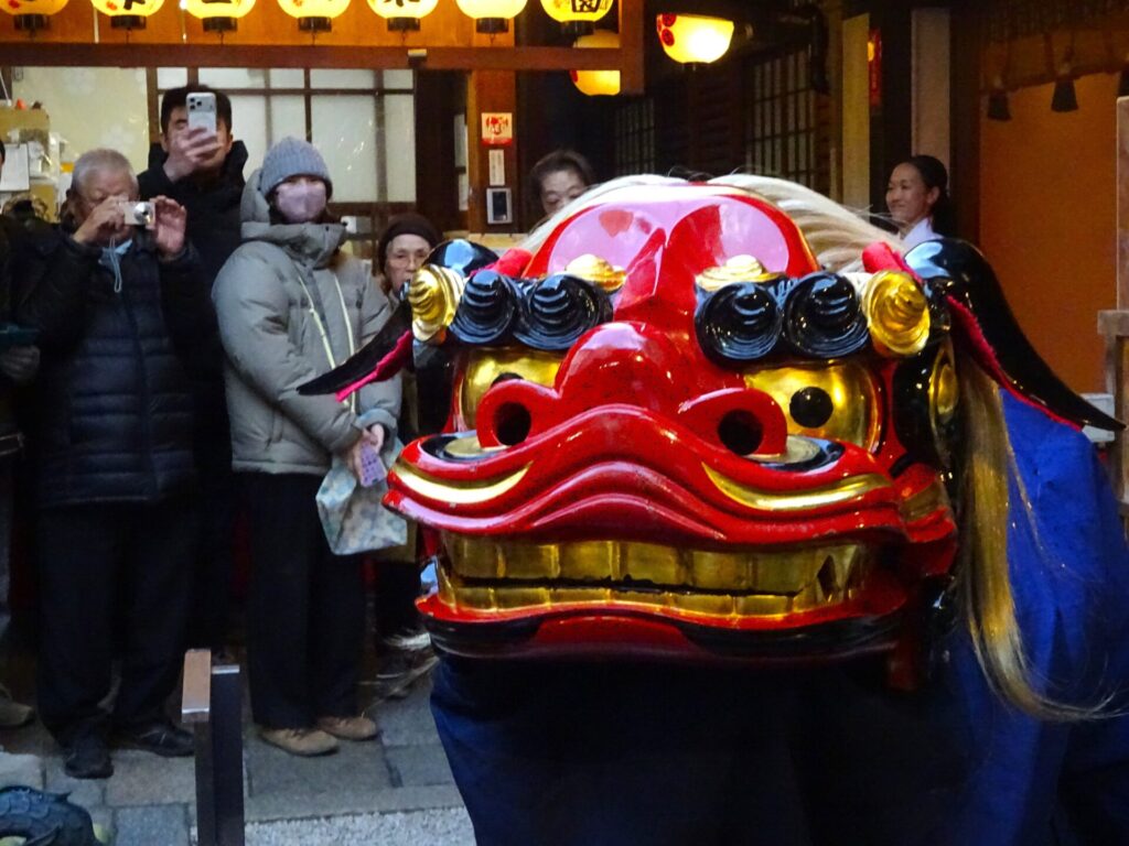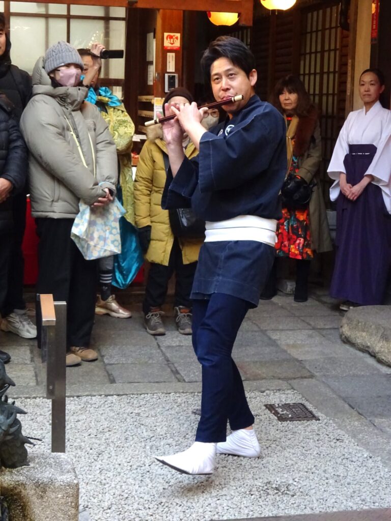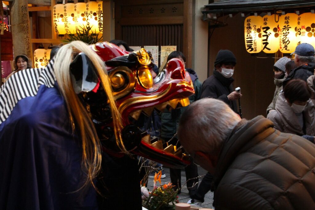 その後和楽器演奏集団「独楽」様による三味線・和太鼓・獅子舞奉納が行われました。境内は厳かながらも華やかなものとなり、奉納後は獅子舞が参拝者の頭を噛み清め、年初めの賑やかながらも穏やかな時間となりました。